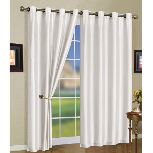 HLC.ME Pair of White Faux Silk Grommet Curtain Panels - 54 by 84 Inch Our luxurious Faux Silk Grommet Panels give your home a new elegant look. Each panel is 56" in Width and 84" in Length. For a full look use 2 panels to cover a standard size window (23" to 36" wide window). This picture shows two faux silk grommet panels, this package contains two (2) faux silk Grommet Panels to complete the set. Decorate every window with style and sophistication. Allows only some light to naturally flow through the room. The finishing touch for your window is a beautiful Decorative Curtain Rod (not included). All curtain sizes are approximate....