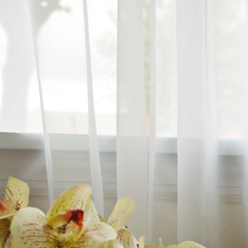 Beautiful Sheer Voile White 1 Pair (Each panel measures 58" Wide x 84" Long, Pair Measures 116" Wide x 84" Long) Best Home Fashion introduces the new sheer voile curtains. Rejuvenate your home decor with our new sheers. These eye-catching sheer panels are the perfect way to take your window treatments beyond the ordinary. Best when used with Best Home Fashions Blackout Curtains....