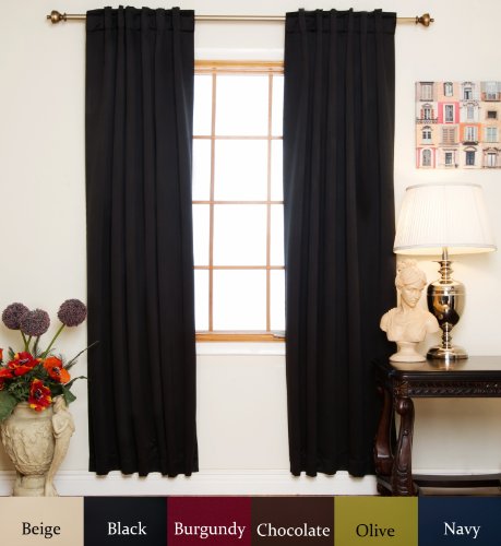 Black Rod Pocket Energy Saving Thermal Insulated Blackout Curtain 108 Inch Length Pair Make your rooms dark, quiet and save money at same time! Blackout curtains are an effective and efficient way to block out 99% of unwanted outside lights whenever you want. Blackout curtains insulates against heat and cold to help you reduce home heating and cooling costs. Blackout curtain offers total privacy and reduce unwanted noise from outside. Available in many different style, size and color. Machine wash, tumble dry, do not bleach...